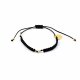 Bransoletka wykonana na sznurku w kolorze czarnym. Elementy srebrne, pozłacane 24 karatowym żółtym złotem. Złocenie wykonywane jest specjalną techniką, dzięki której złocenie jest bardziej odporne na ścieranie. Regulacja długości. Hand made.