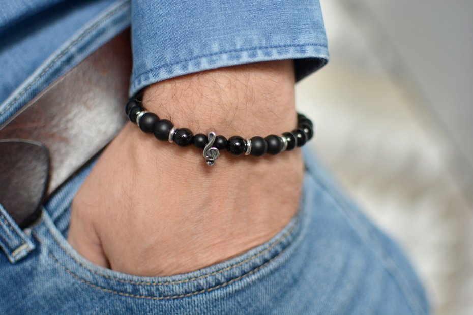 Tagi: #bransoletka z kamieni, #klucz wiolinowy, #męska bransoletka, #onyks