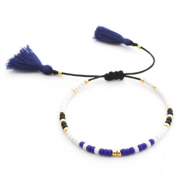 Bransoletki zostały wykonane ze sznurów jubilerskich oraz z drobnych, szklanych korali TOHO produkcji japońskiej, które cechuje bardzo wysoka jakość oraz ich idealny kształt. Dodatkowo, koraliki nie tracą swojego koloru ani się nie ścierają. Każda z bransoletek, jest ozdobiona ręcznie wykonanymi chwostami z nici bawełnianych.