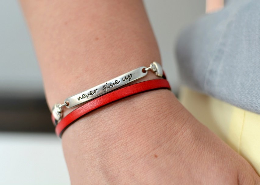 Tagi: #bransoletka damska, #bransoletka skórzana, #never give up