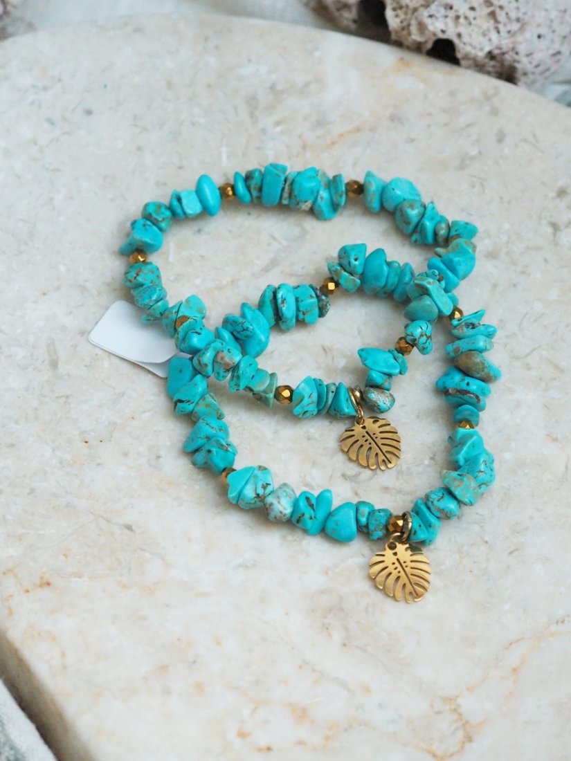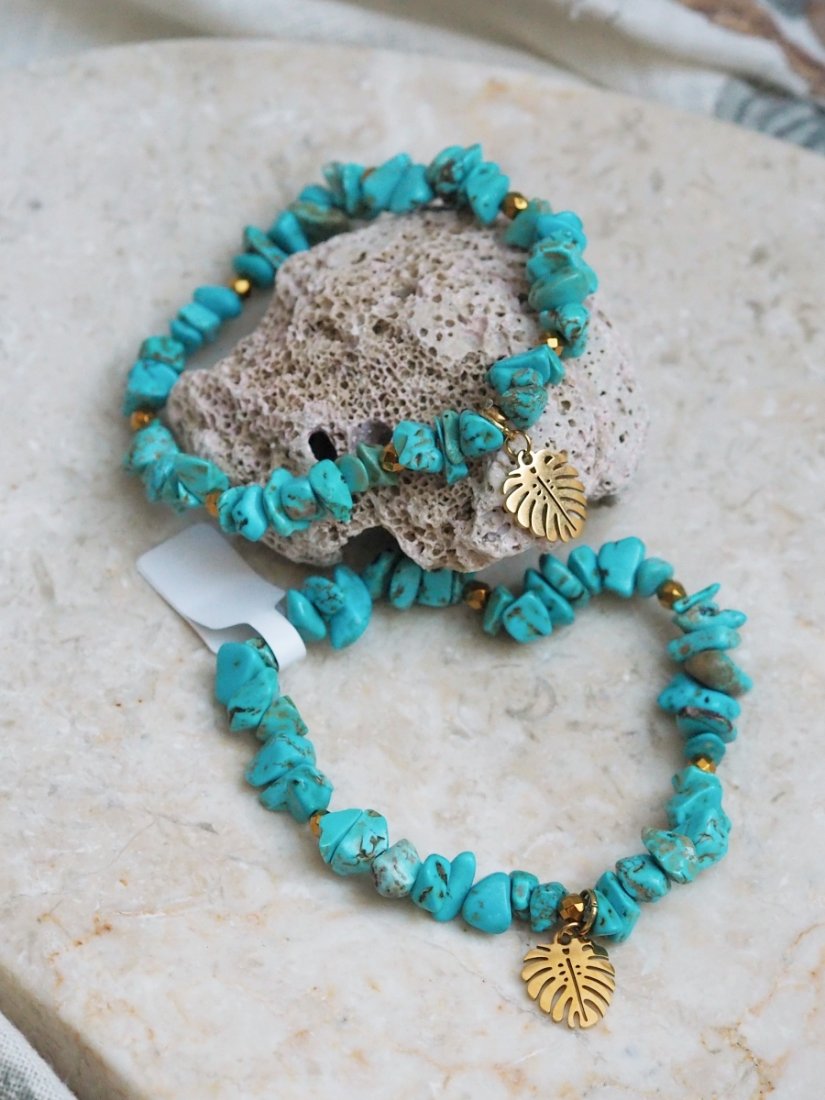 Bransoletka wykonana z nieregularnego turkusu to połączenie duszy natury i kobiecej delikatności.