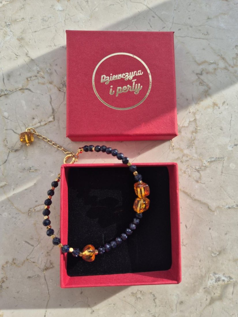 Tagi: #bransoletka noc kairu, #bransoletka z bursztynem, #granatowa bransoletka, #wieczorowa bransoletka
