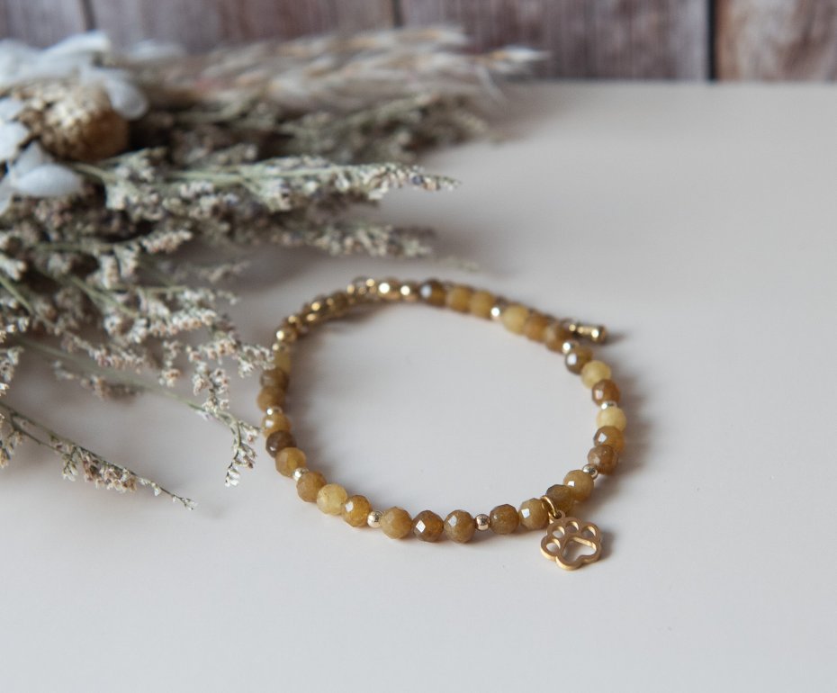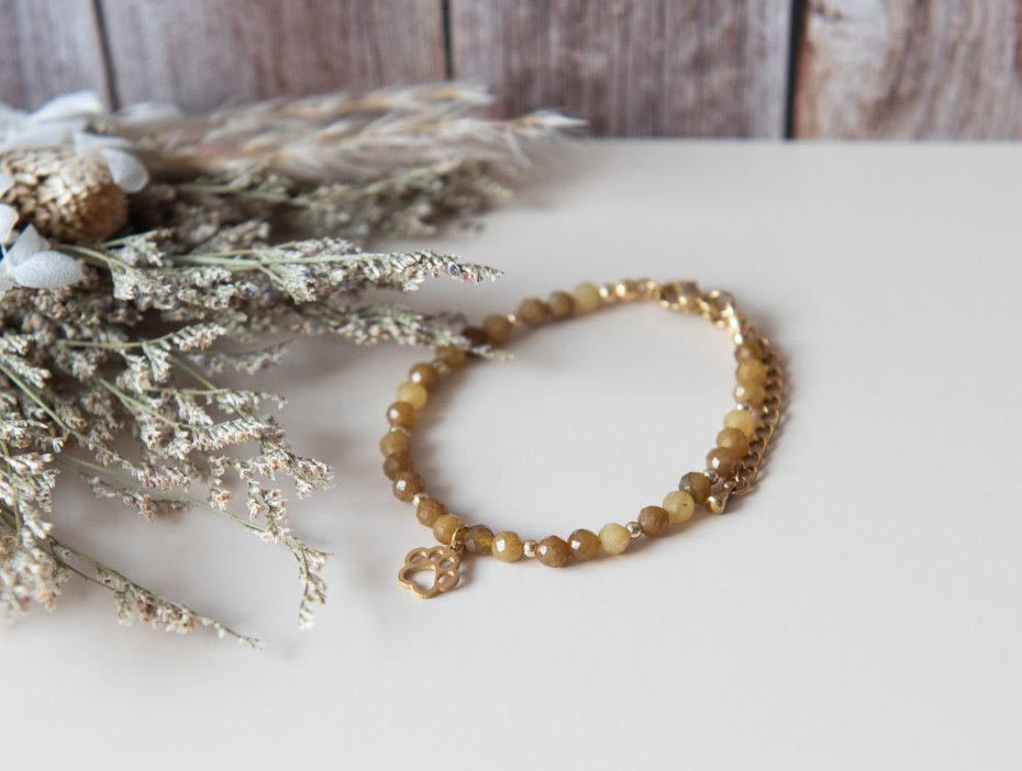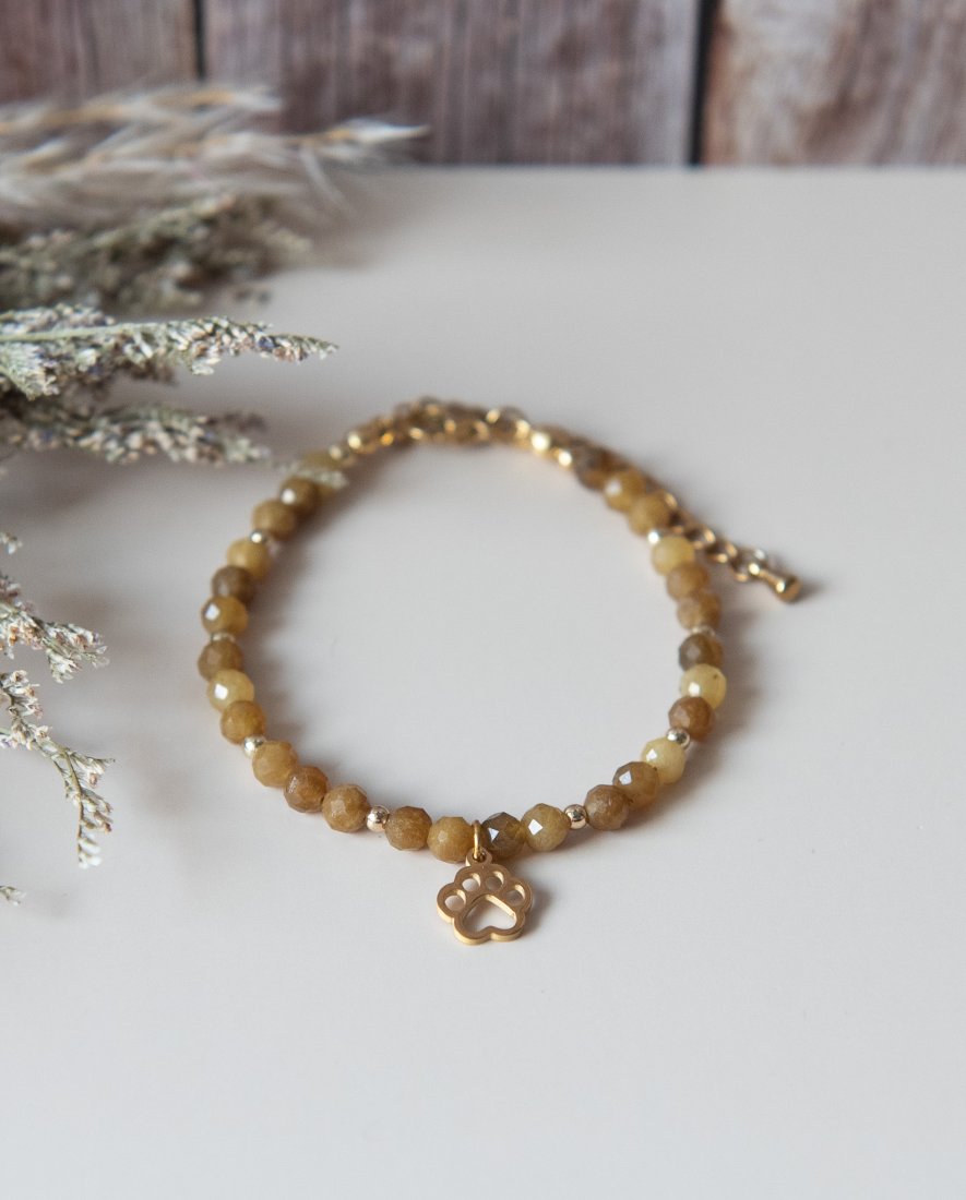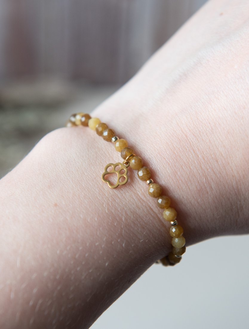 Bransoletka PAWSY, dla każdej miłośniczki zwierząt :) Wykonana z kamieni fasetowanych - topaz ( 4 mm) oraz z elementów ze stali szlachetnej.