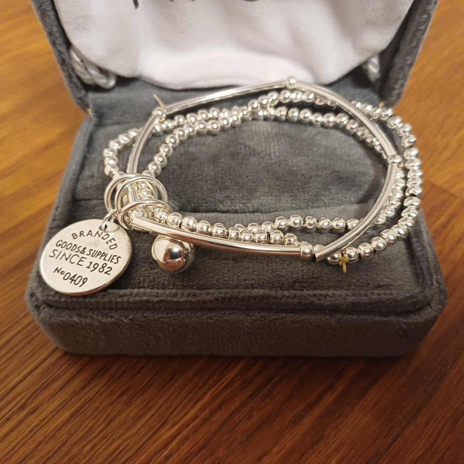 Stalowa bransoletka na gumce. Połączone trzy bransoketki. Rozmiar uniwersalny,ok. 20 cm.