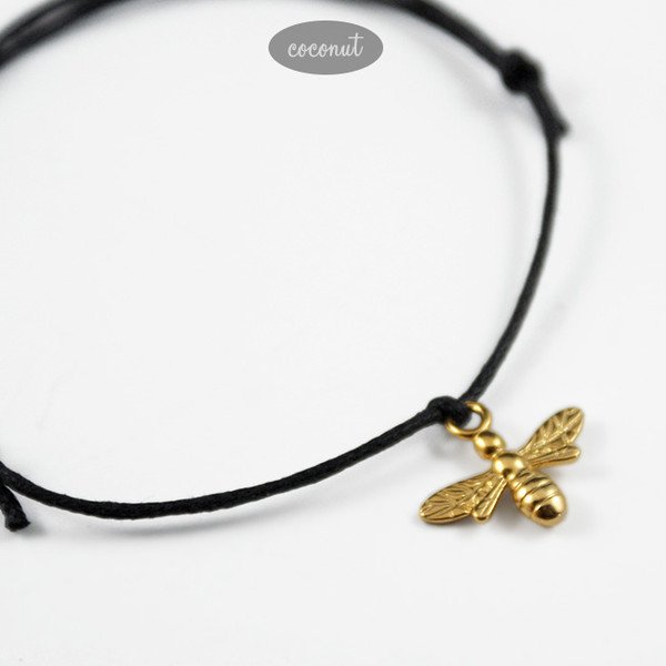 Bransoletka na woskowanym bawełnianym sznurku, obwód regulowany (przesuwane supełki),
