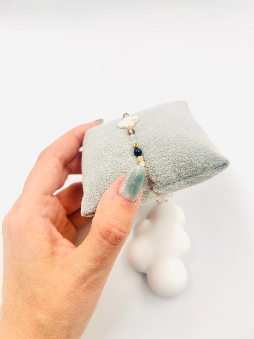 5.  > Bransoletka ręcznie robiona z naturalnych kamieni i masy perłowej na jedwabnej nitce (nr 7084712)