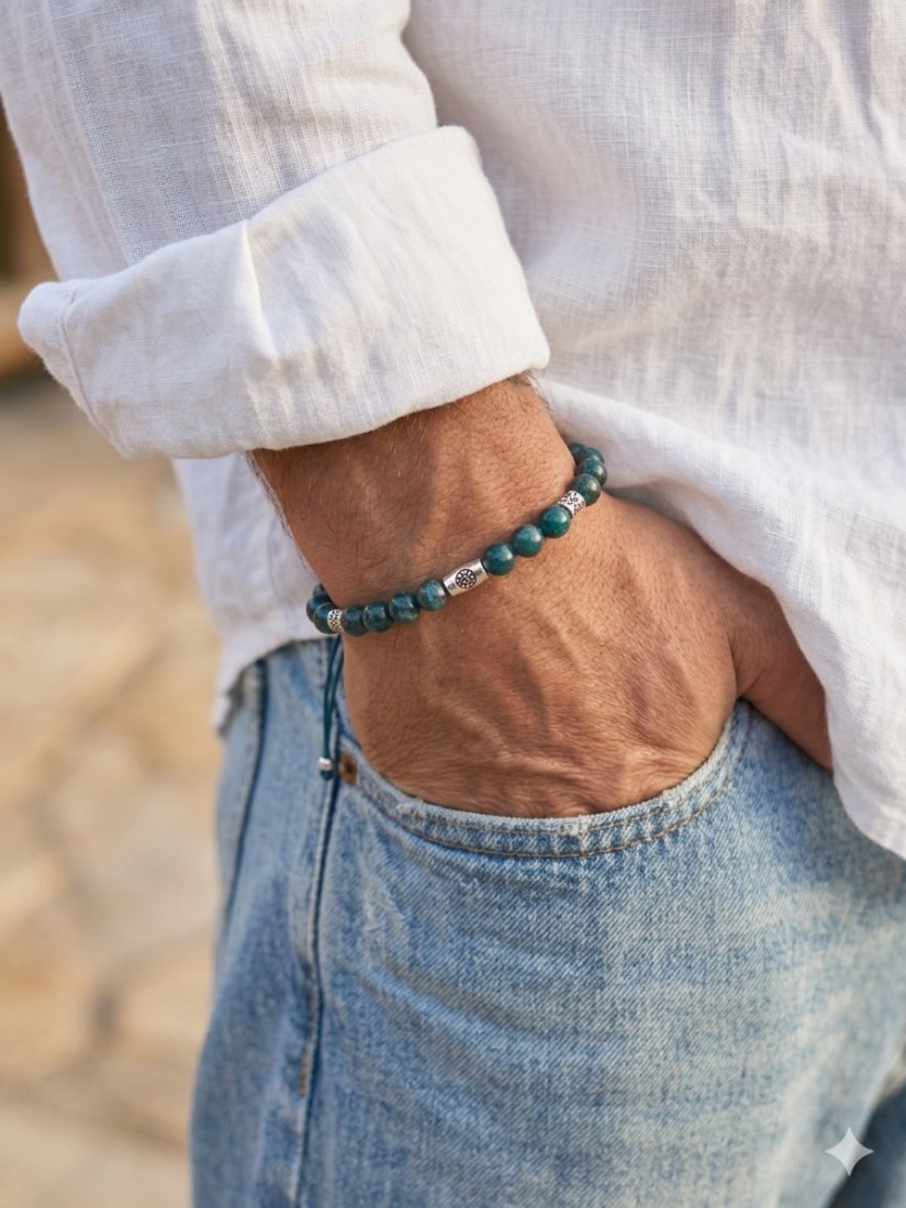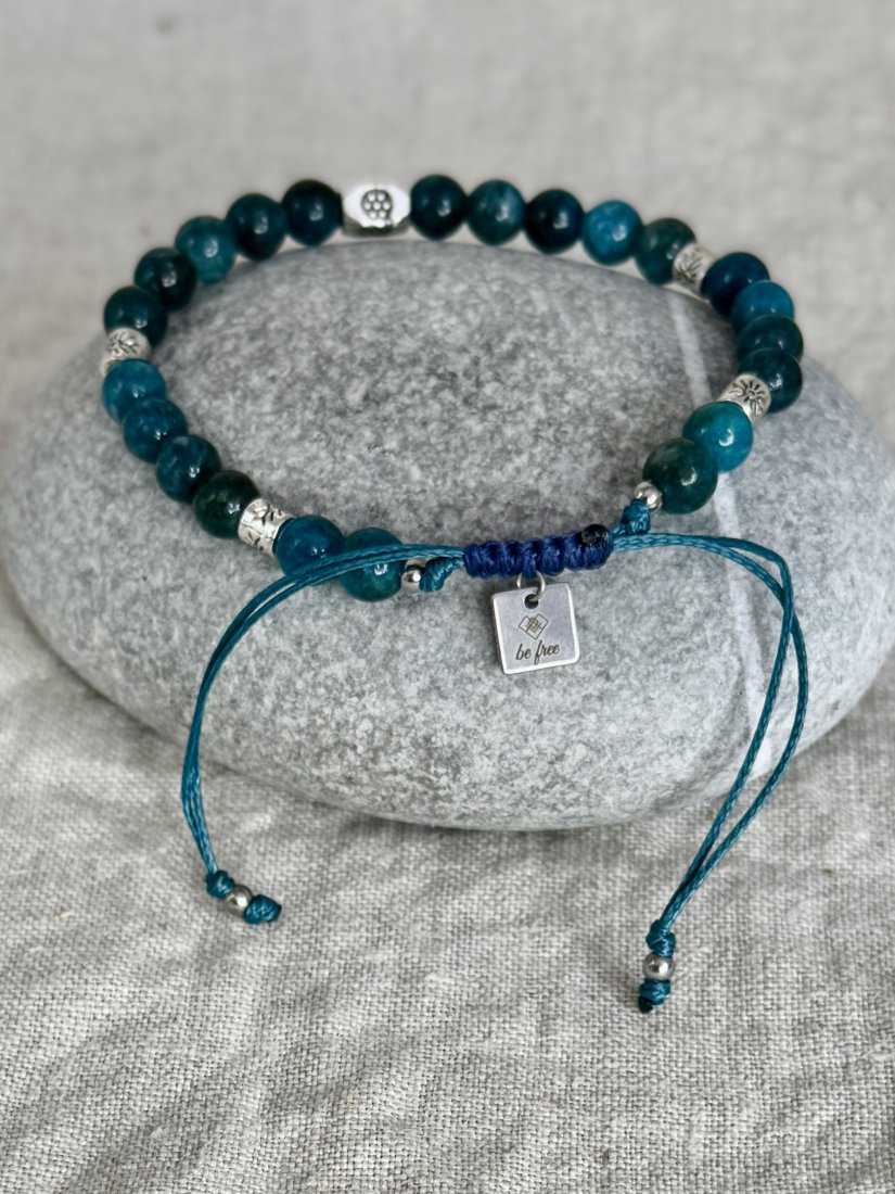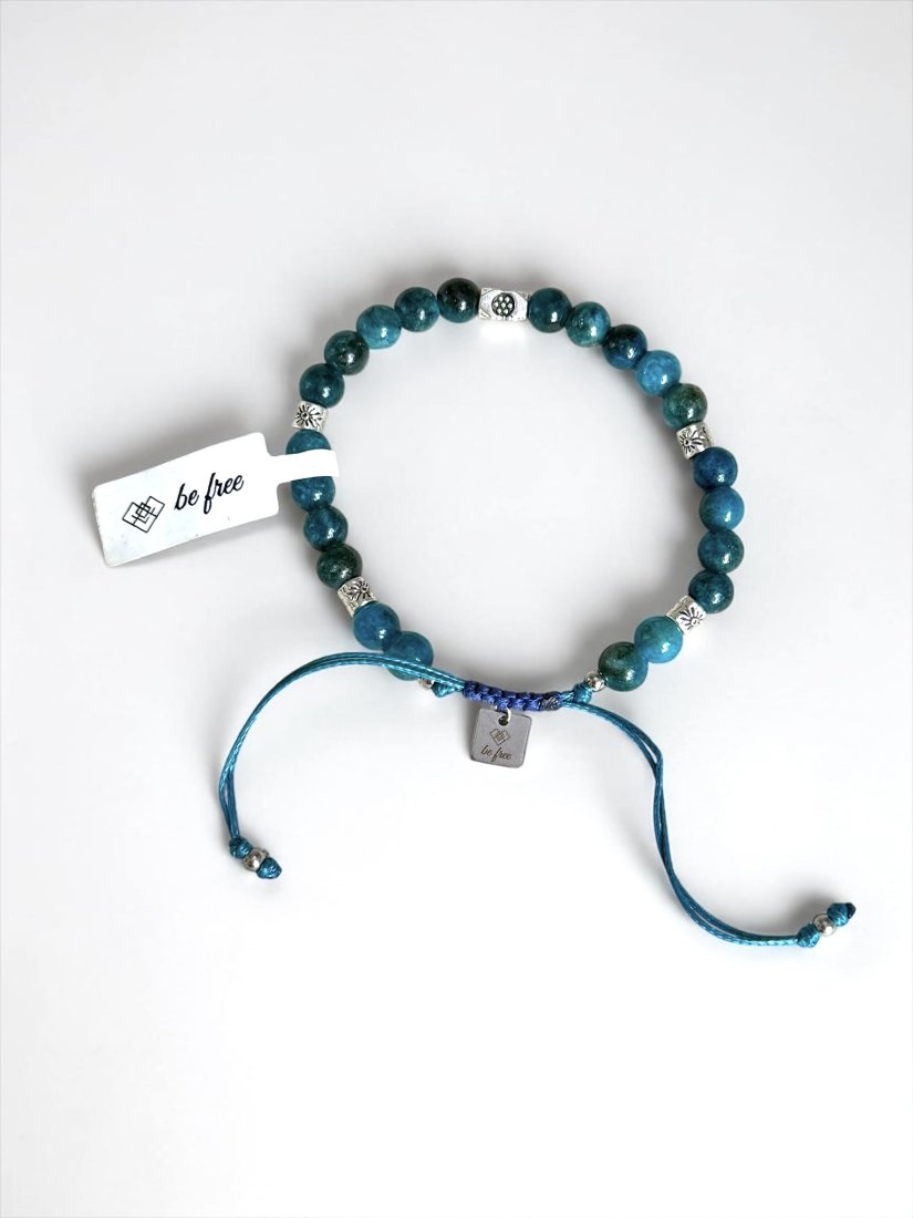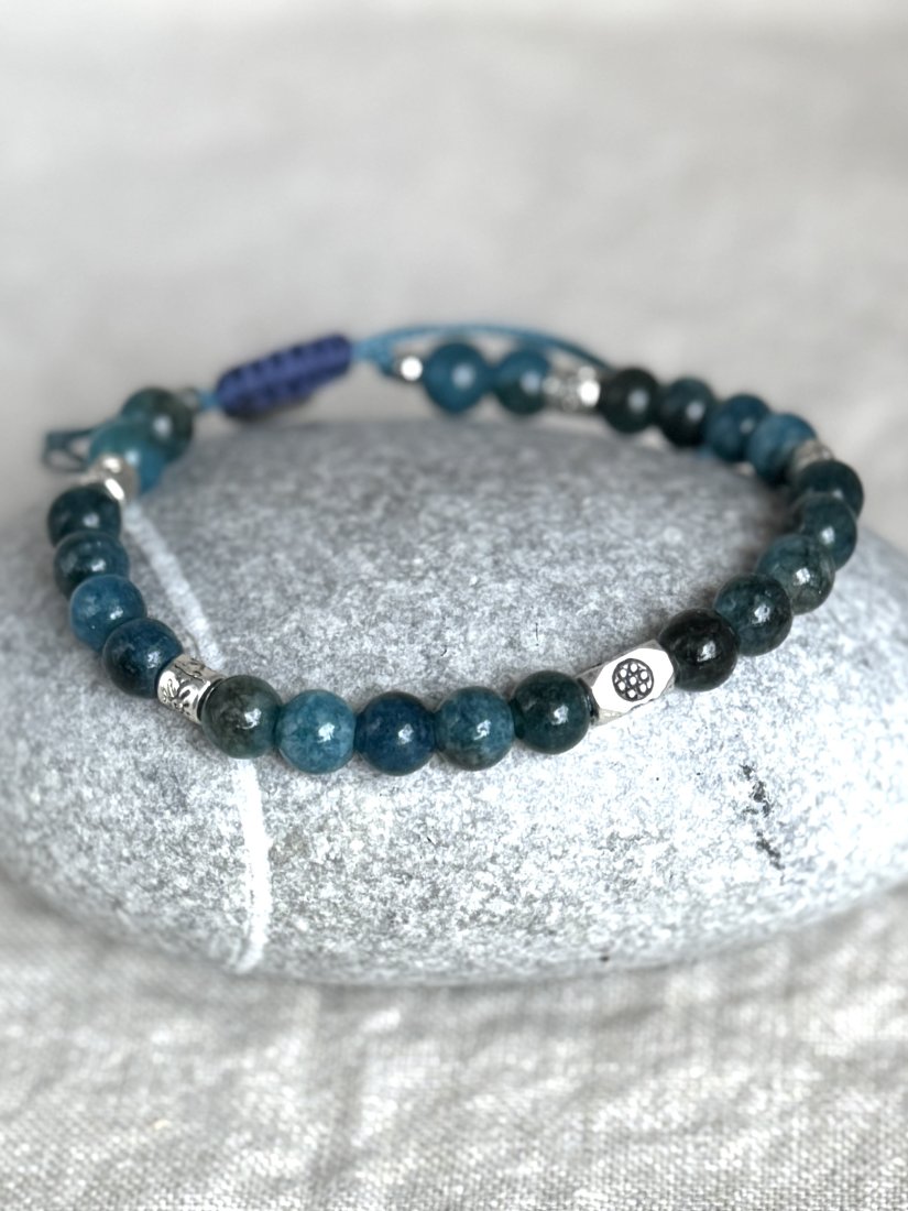 Podkręć codzienny styl ręcznie wykonaną bransoletką z naturalnego, niebieskiego apatytu. Jego głębokie, oceaniczne barwy sprzyjają wyciszeniu i koncentracji.