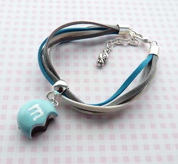 Oryginalna i słodka bransoletka z rzemyków, z zawieszką cukierkiem:) długość bransoletki regulowana, ok.16cm+łańcuszek przedłużający, średnica zawieszki: ok.2cm. Wysyłam ozdobnie zapakowaną;)