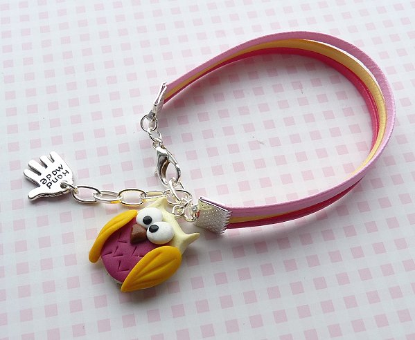 Oryginalna i słodka bransoletka z rzemyków, z miniaturową sówką:) długość bransoletki regulowana, ok.16cm+łańcuszek przedłużający, wysokość zawieszki: ok.2-2,5cm. Wysyłam ozdobnie zapakowaną;)