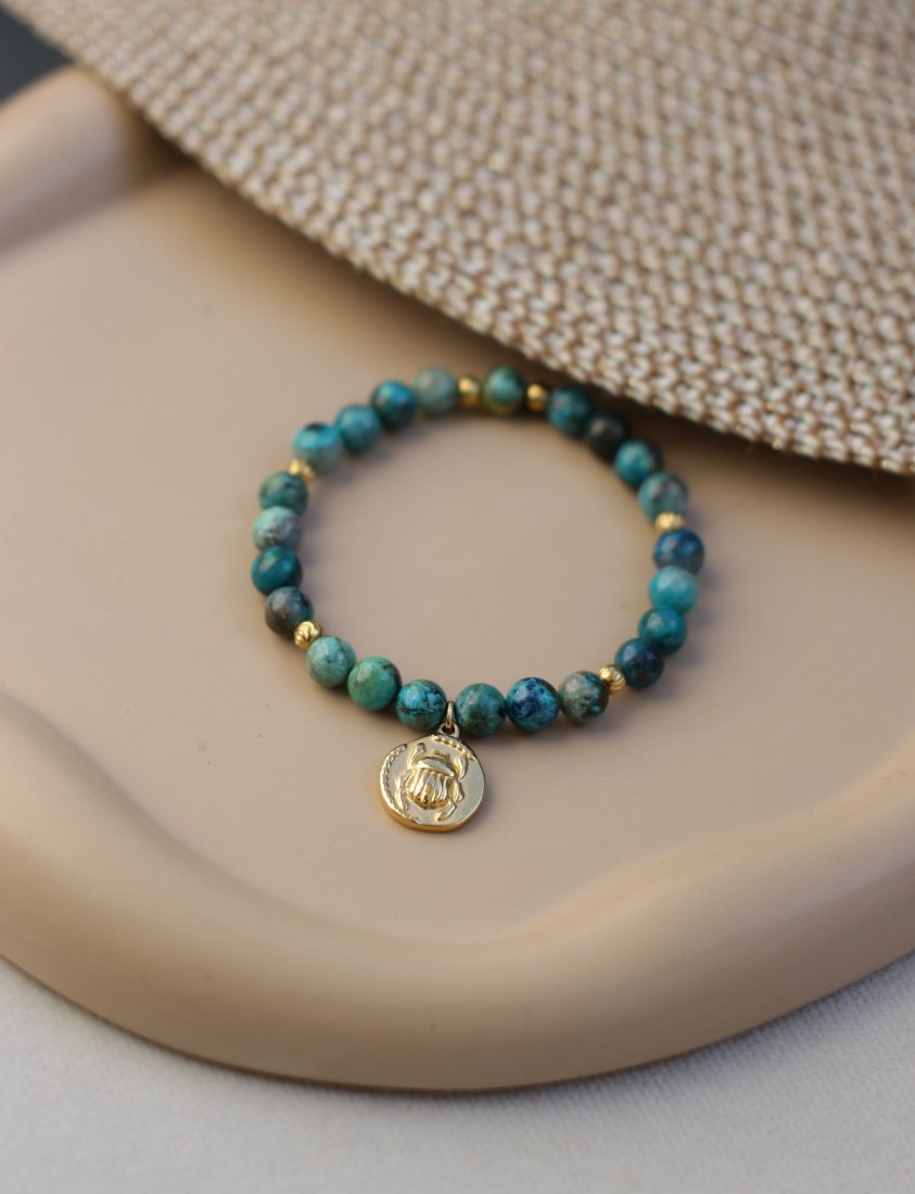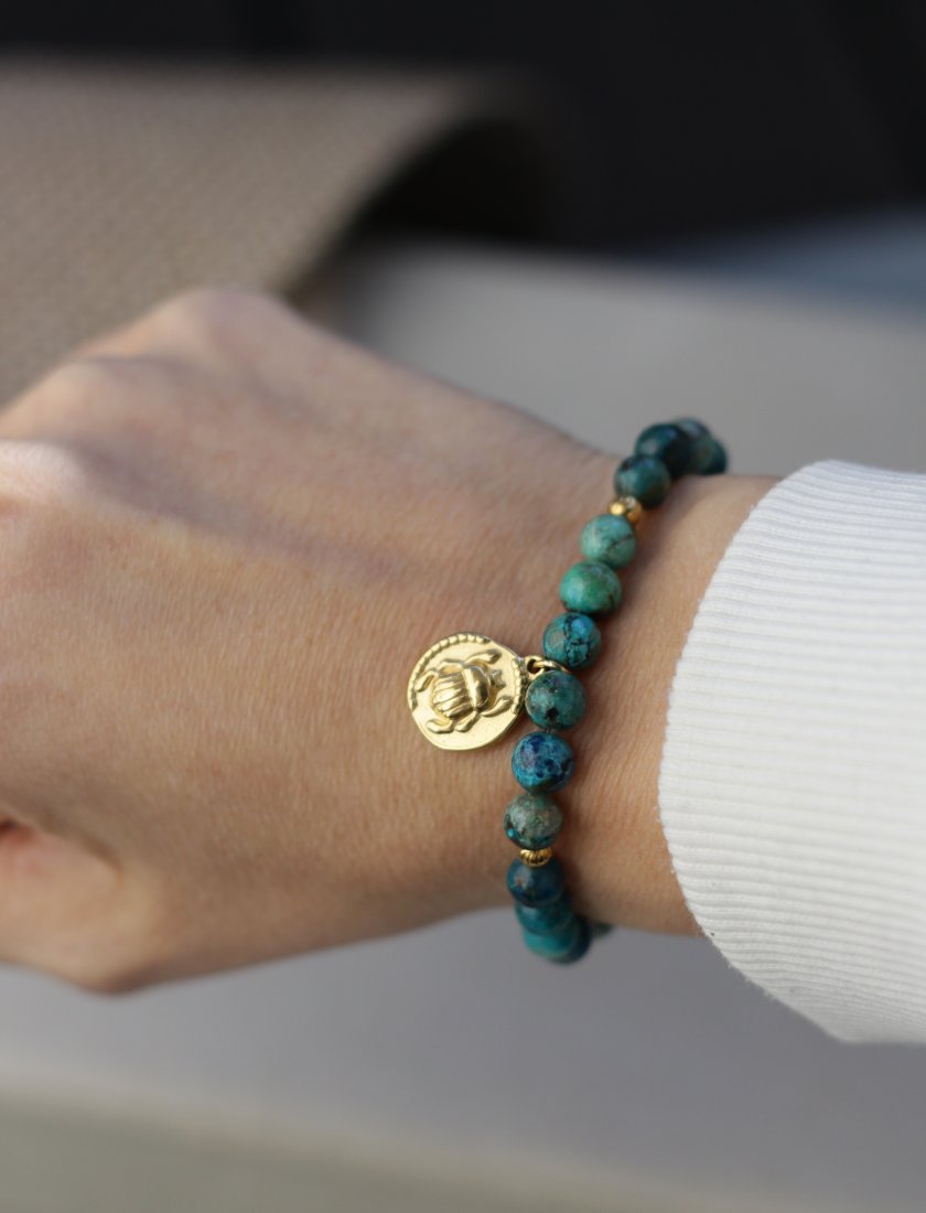 Tagi: #bransoletka z kamieni, #chryzakola, #kamienie naturalne, #skarabeusz