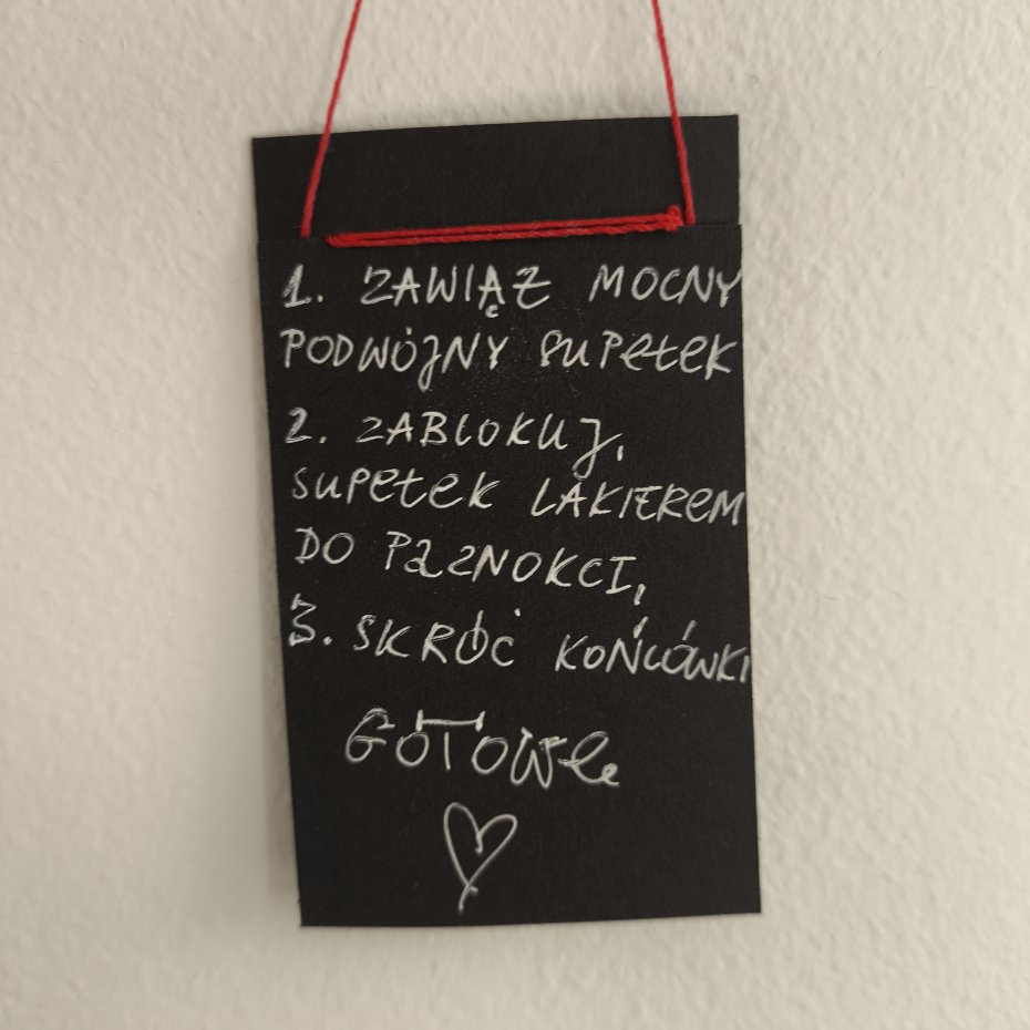 Wystarczy zawiązać podwójny, mocny supełek i zabezpieczyć go lakierem do paznokci.