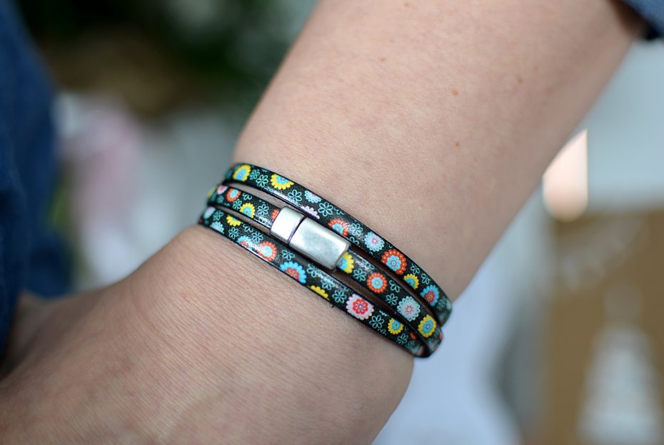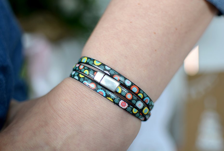 Ważne: poszczególne sztuki mogą różnić się miejscem rozmieszczenia wzoru na rzemieniu, z którego jest wykonana bransoletka.