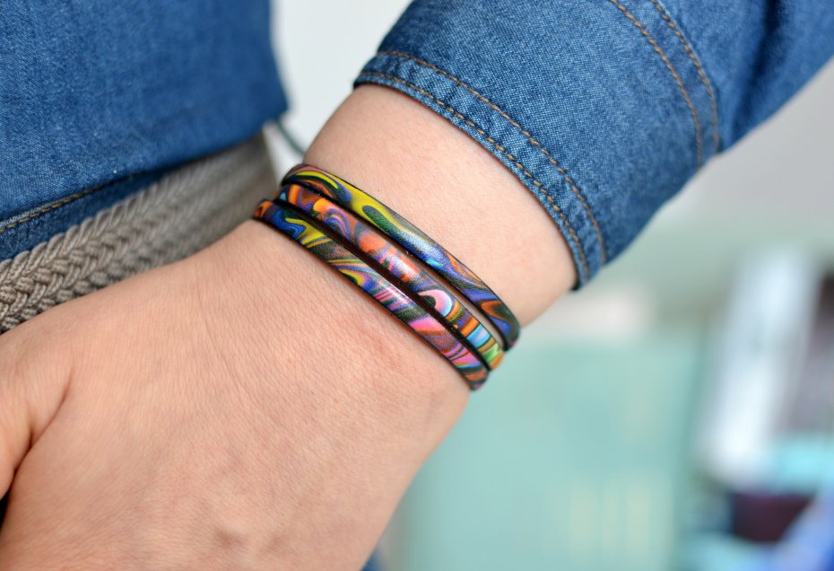 WAŻNE: poszczególne sztuki mogą różnić się miejscem rozmieszczenia wzoru na rzemieniu, z którego jest wykonana bransoletka!