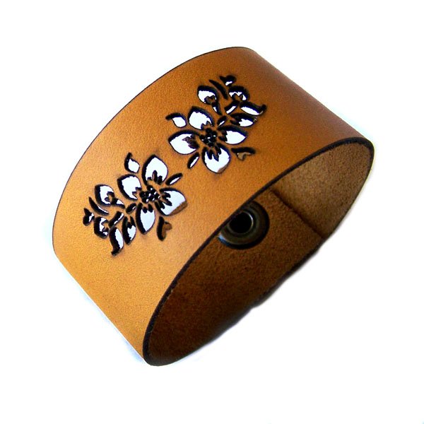 BRANSOLETKA SKÓRZANA - KWIATY - MIODOWA