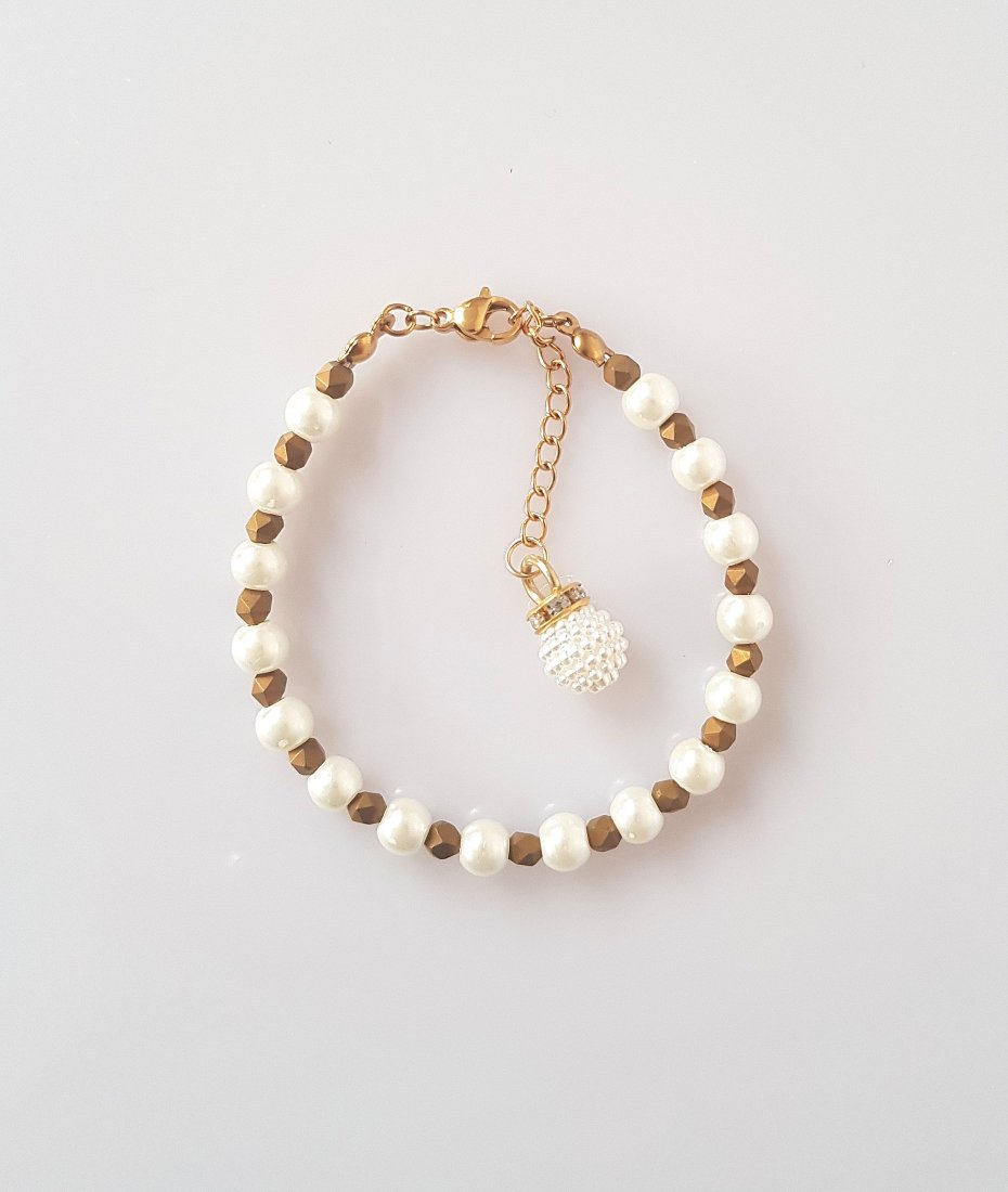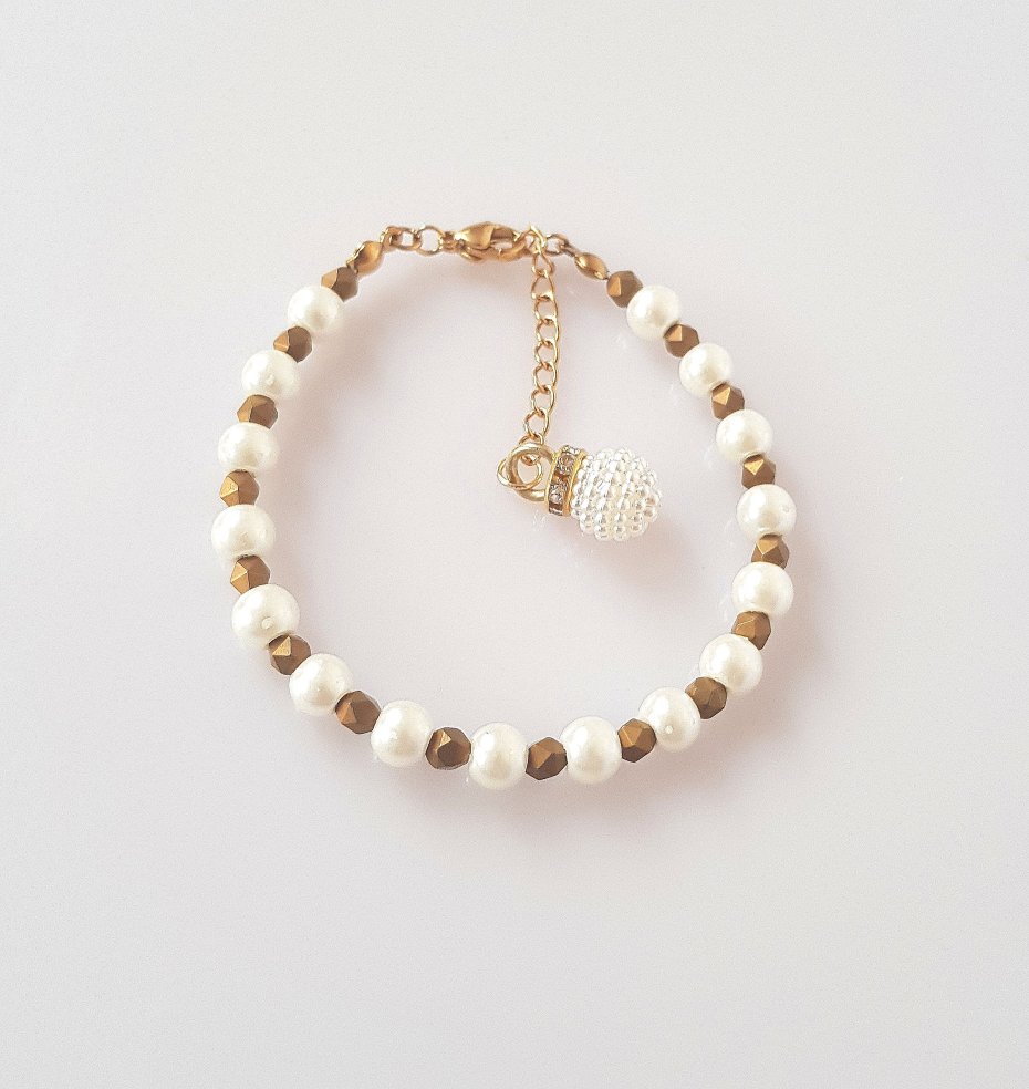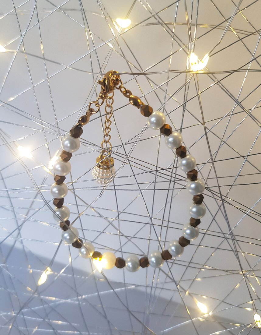 Tagi: #bransoletka z perłami, #bransoletka z zawieszką, #elegancka bransoletka, #hematyt złoty