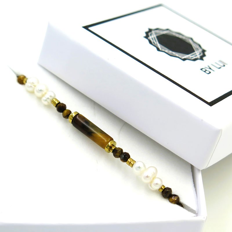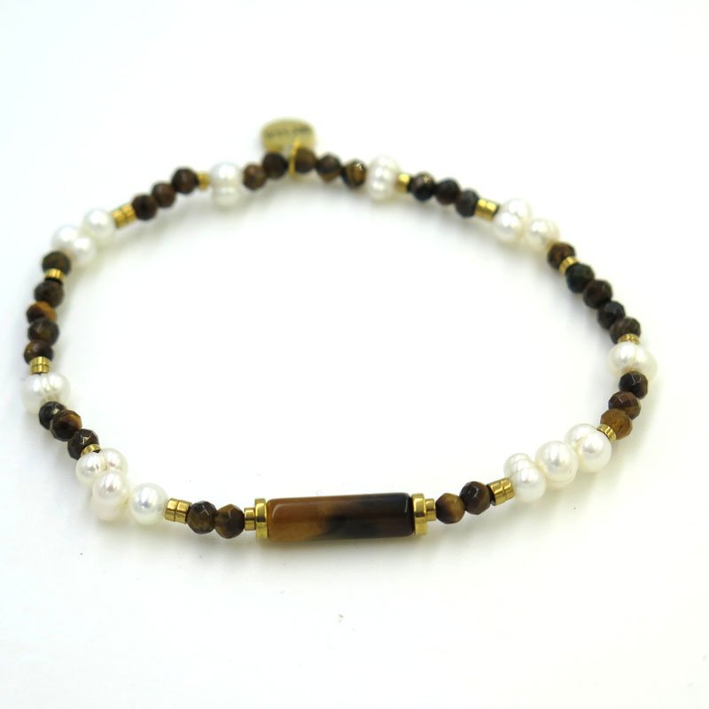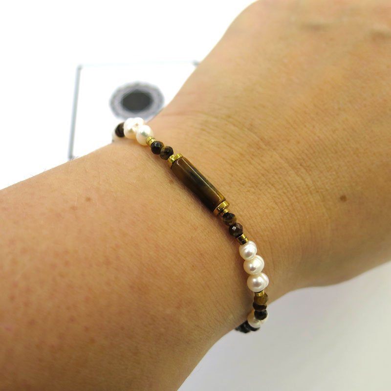 Bransoletka EXOTIC EXPEDITION z naturalnych pereł, tygrysiego oka i złotego hematytu to elegancki, ręcznie wykonany dodatek w ciepłej, egzotycznej kolorystyce — idealny na prezent i do codziennych stylizacji. Dzięki połączeniu kamieni o wyjątkowych właściwościach energetycznych stanowi piękny talizman dla kobiet kochających biżuterię handmade i podróżniczy styl. Inspiracja