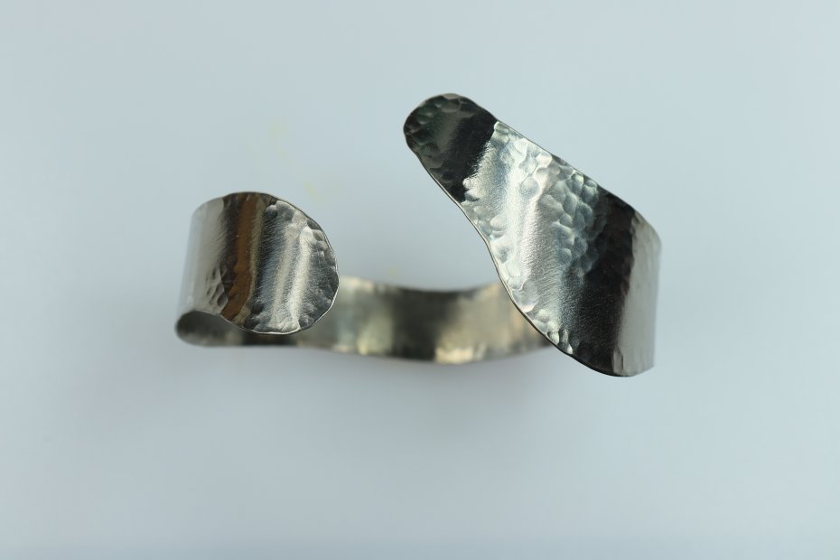 Ręcznie wykonana bransoletka z tytanu Grade I. Tytan repusowany z ciekawą teksturą. Nowoczesny i minimalistyczny projekt. Bransoletka jest lekka (8 g) i hipoalergiczna. Szerokość bransoletki 1.8 cm a średnica 6 cm. Całkowita długość 19 cm = 17 cm + 2 cm