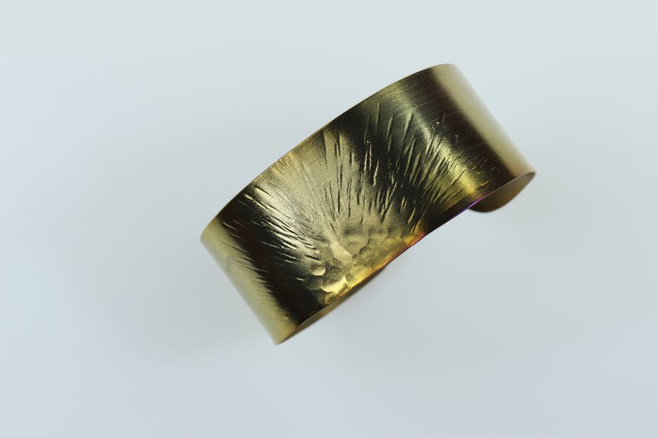 Ręcznie wykonana bransoletka z tytanu Grade I. Tytan repusowany. Bransoletka jest lekka (12 g) i hipoalergiczna. Szerokość bransoletki 2,6 cm a średnica 6 cm (regulowana).