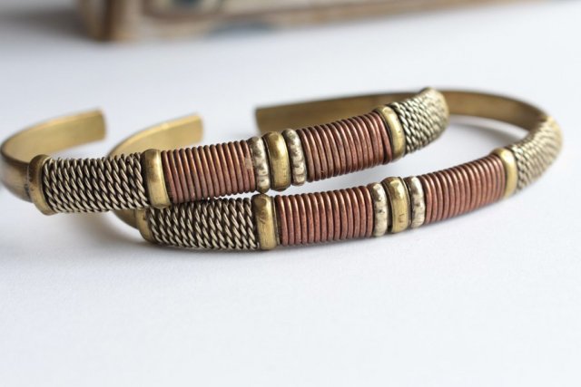 Oryginalna bransoletka w odcieniach starego złota i miedzi. Wykonana z metalu. Cena dotyczy 1 bransoletki.