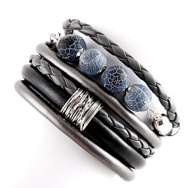 Niezwykła, efektowna bransoletka łącząca w sobie wygodę i elegancję. Bransoletka stanowi jedną formę - złożoną z rzemieni oraz kul kamieni naturalnych - agatów trawionych.