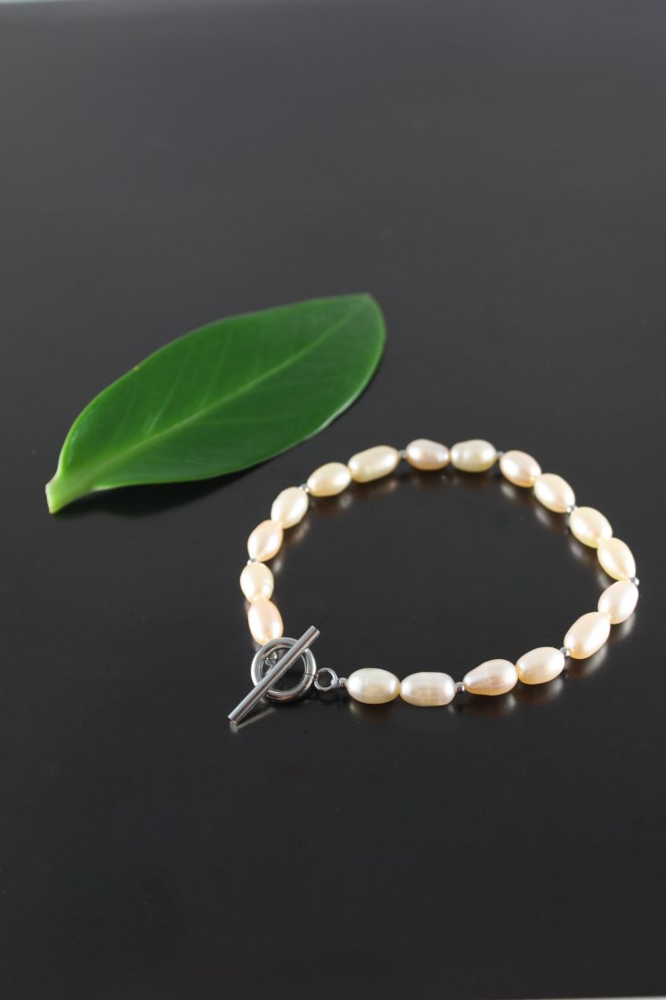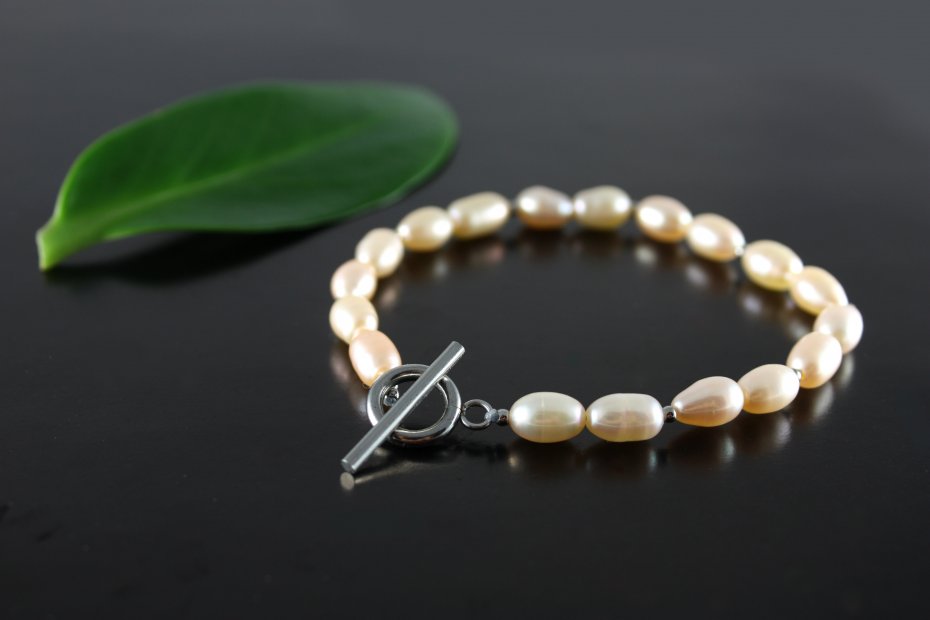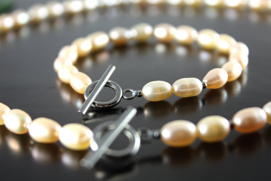 Bransoletka z interesujących brzoskwiniowych pereł naturalnych. Dzięki odwadze Koko Chanel perły możesz nosić do każdej stylizacji: w pracy, na ślubie, w dyskotece i operze. Bransoletka doskonale wygląda w komplecie z naszyjnikiem, który znajdziecie na mojej innej aukcji w korzystnej cenie.