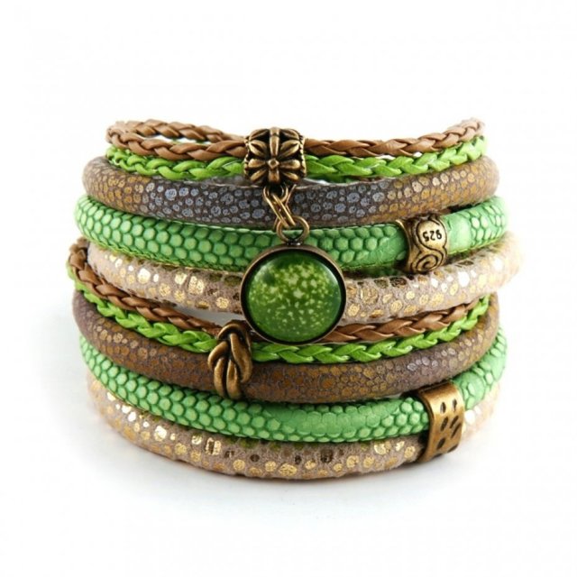 Stylowa, wygoda i niebanalna bransoletka wykonana z wielu rzemyków ze skóry ekologicznej dobranych kolorystycznie.