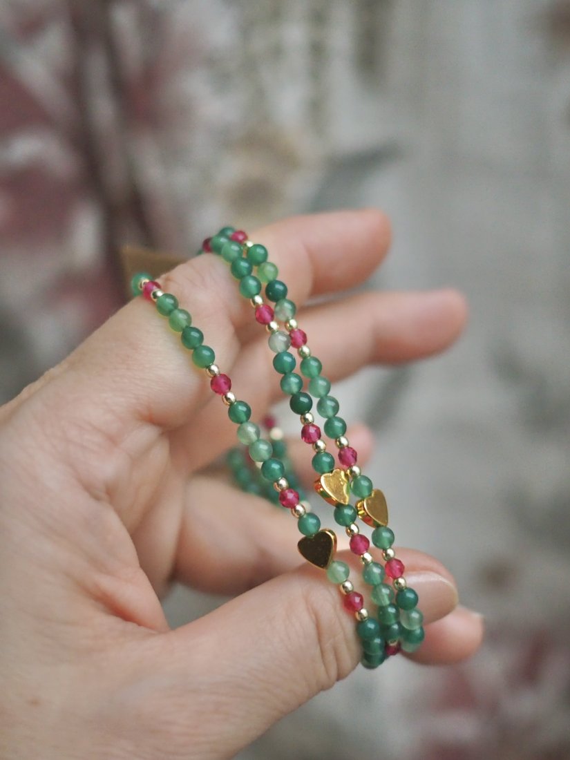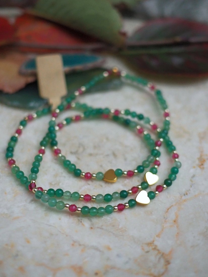 Autorska bransoletka z kolekcji DomilkowyDomek to połączenie dwóch kamieni o wyjątkowej energii – jadeitu, symbolizującego harmonię i spokój, oraz różowego turmalinu, kamienia miłości i kobiecości.