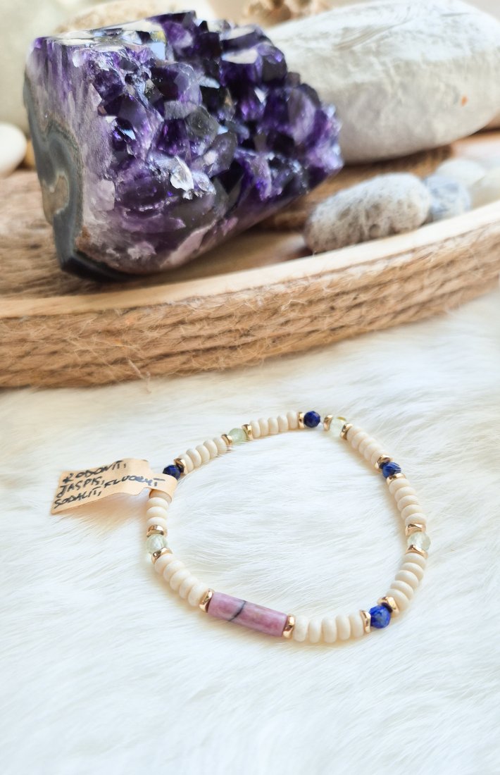 Tagi: #bransoletka z kamieniami, #jaspis rzeczny, #naturalna biżuteria, #sodalit