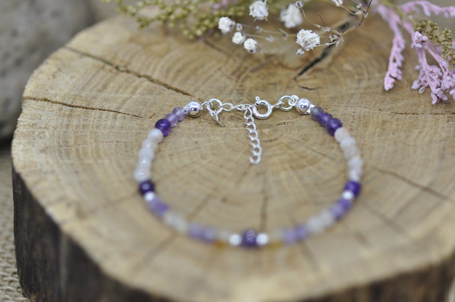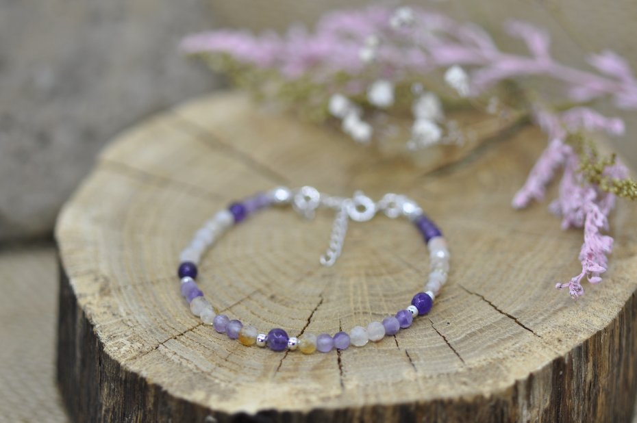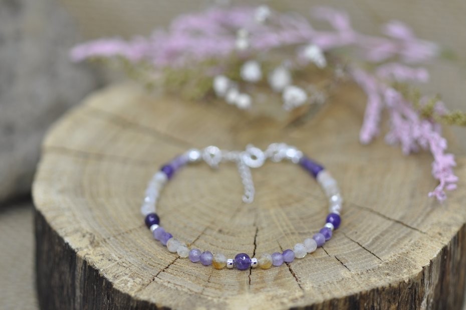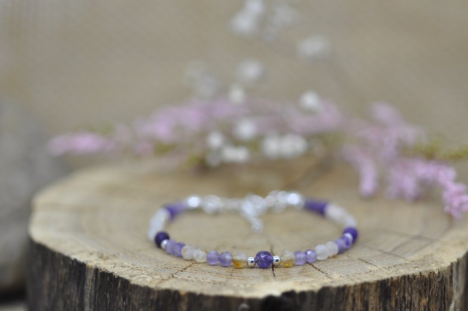 Ametyst - zwiększa kontrolę nad płynnością emocji i wspiera emocjonalną równowagę, nazywany jest naturalnym środkiem uspokajającym;