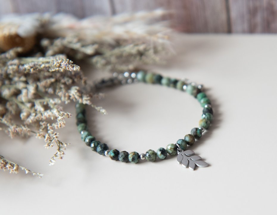Tagi: #bransoletka z zawieszką, #liść, #listek, #turkus afrykański
