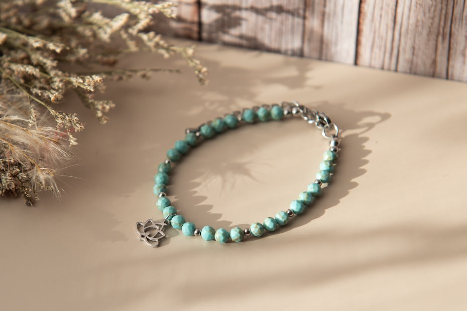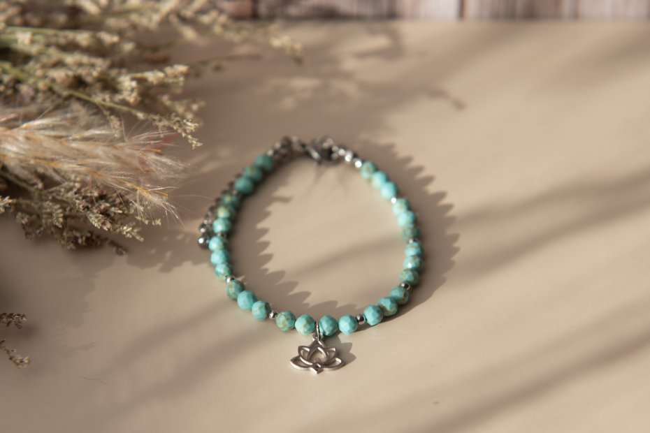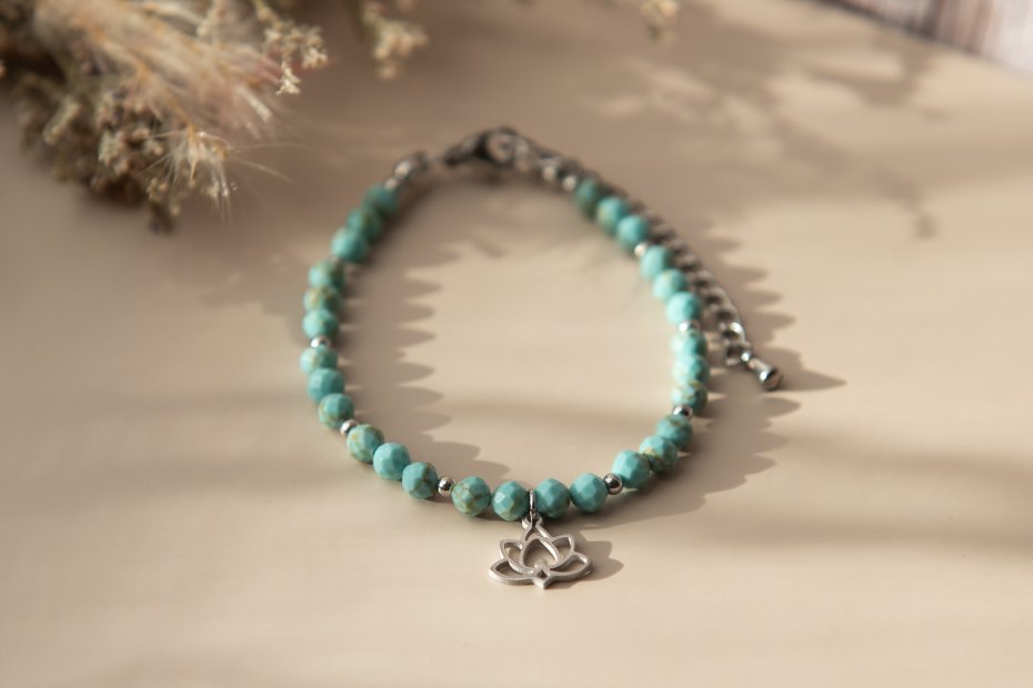 Tagi: #bransoletka z kamieni, #bransoletka z zawieszką, #kwiat lotosu, #turkus