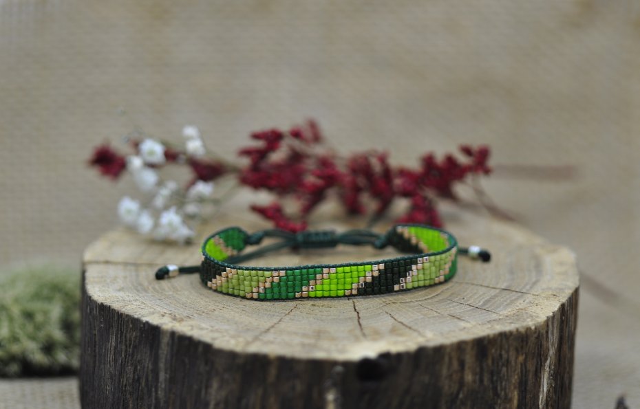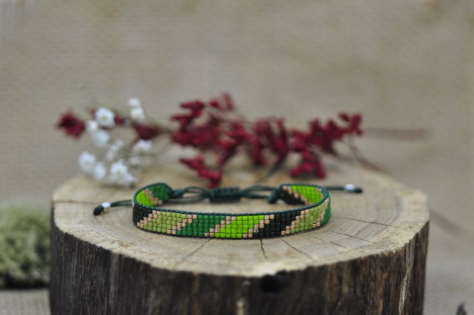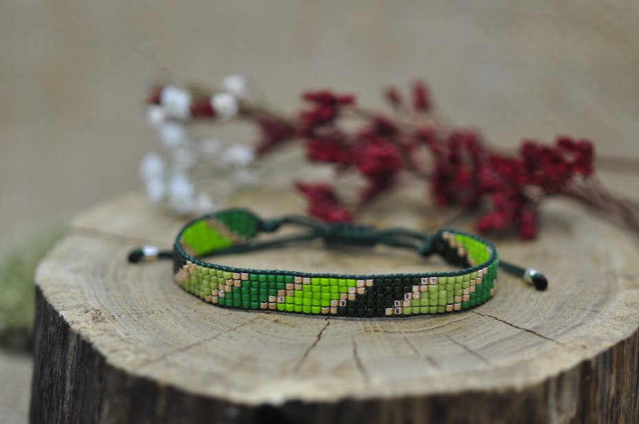 Bransoletka wykonana na krośnie z najwyższej jakości koralików Miyuki Delica, znanych ze swojej idealnej równości i pięknego połysku.