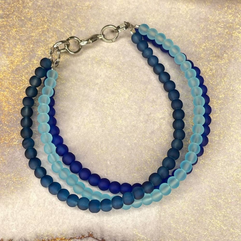 Tagi: #niebieska bransoletka, #rzędowa bransoletka, #w odcieniach niebieskiego, #z niebieskich koralików