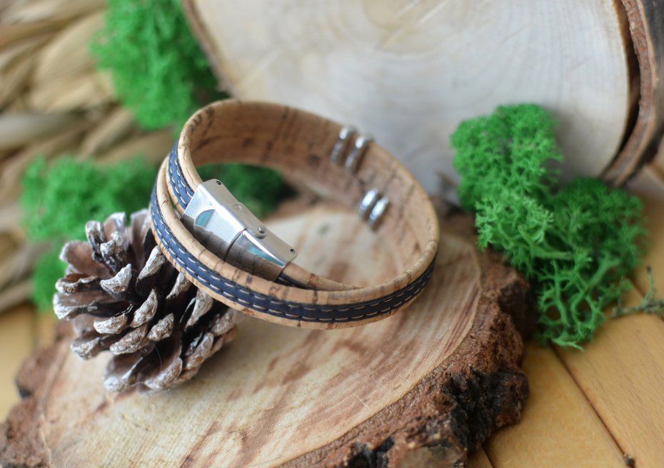 Tagi: #bransoletka z korka, #korek, #podwójna, #stal szlachetna