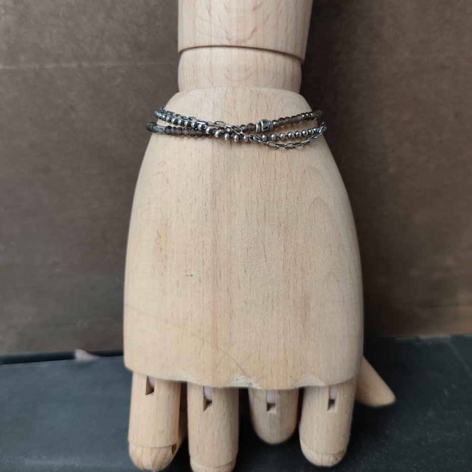 Bransoletka została wykonana ze srebra próby 925 oraz z naturalnego kwarcu dymnego.