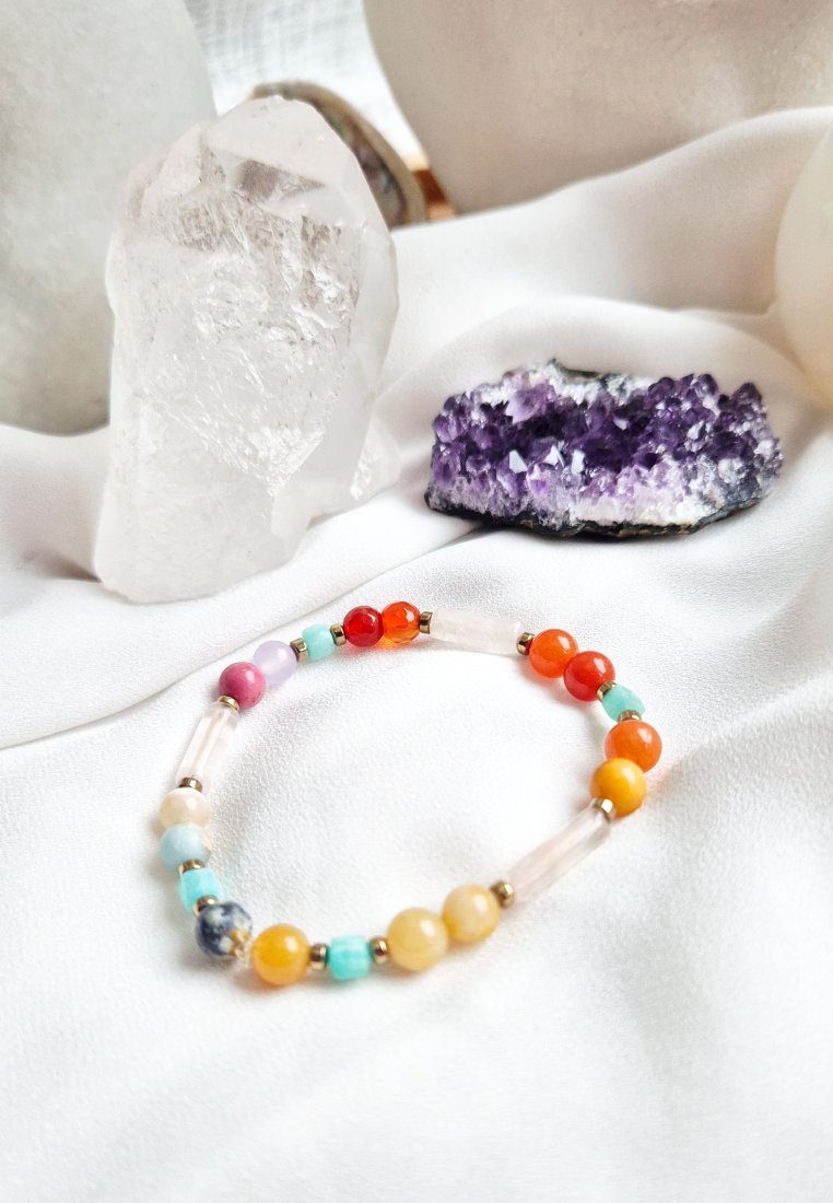 Bransoletka z kwarcu różowego,karneolu , amazonitu, rodonitu i jadeitu.