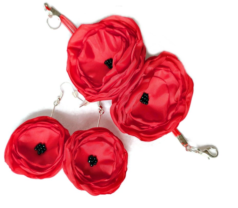 Bransoletka wykonana z materiałowych kwiatuszków, regulowana bransoletka, wielkość kwiatków ok.4cm,
