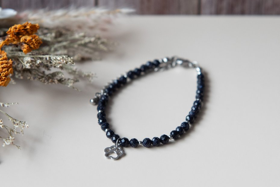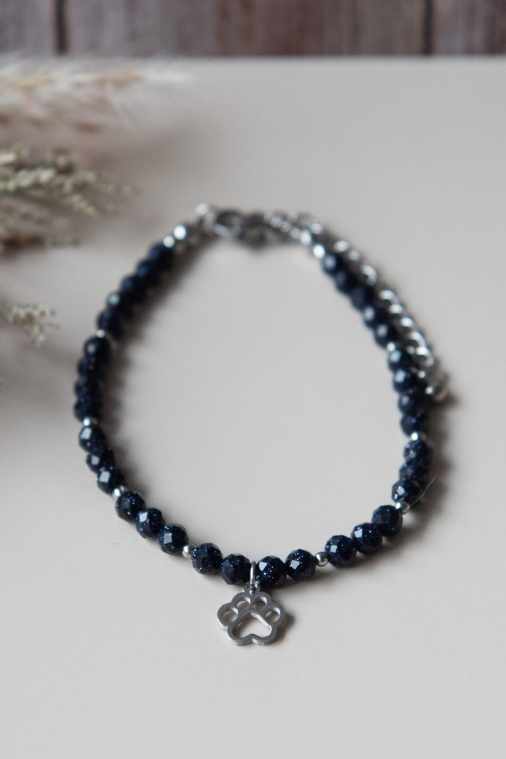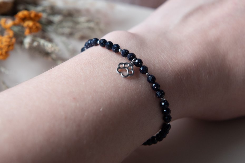 Bransoletka idealna dla każdej miłośniczki zwierząt, wykonana z kamieni - noc Kairu fasetowany (4 mm) oraz z elementów ze stali nierdzewnej. Biżuteria autorska, unikatowa, ręcznie wykonana.