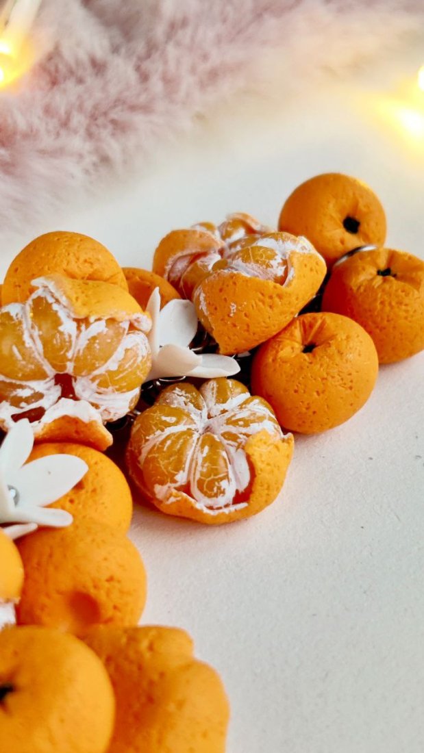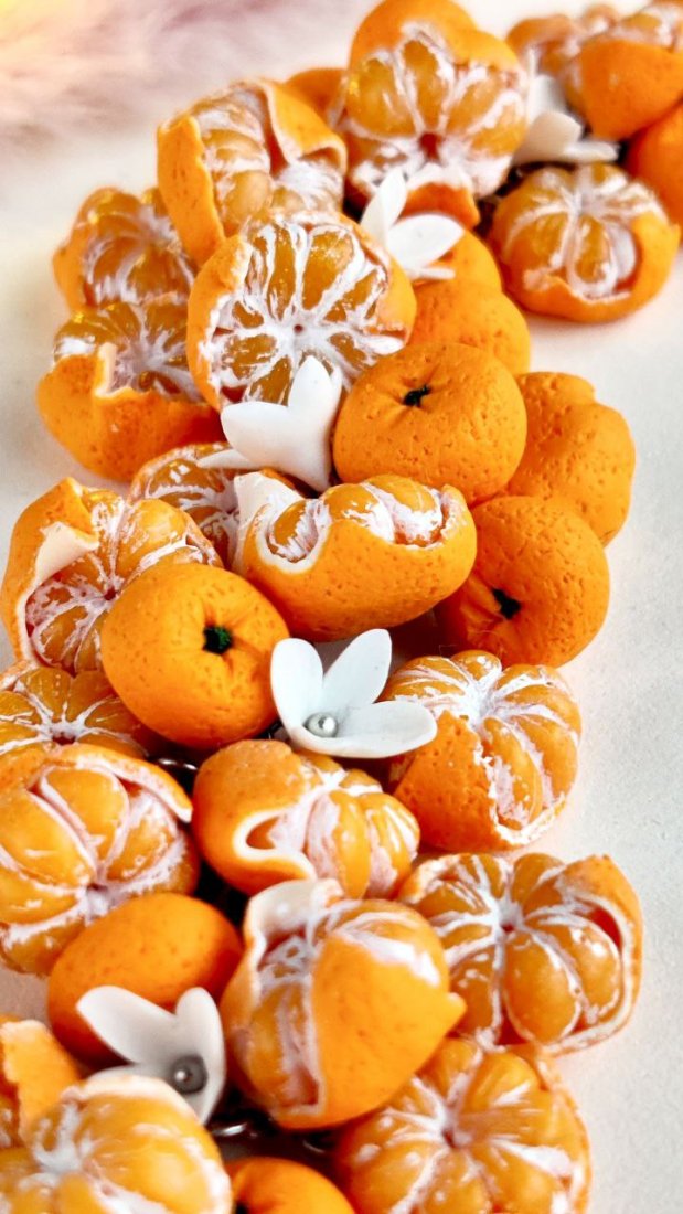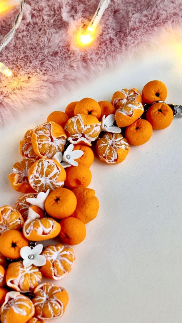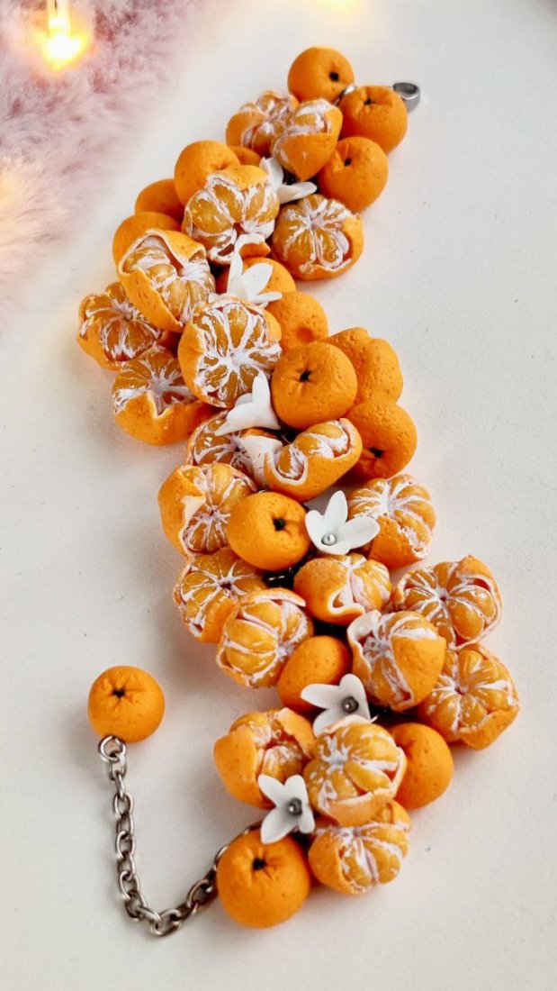 Każdy element został wykonany ręcznie z gliny polimerowej – bez form i odlewów. Każda "cząstka" mandarynki jest modelowana indywidualnie, dzięki czemu bransoletka jest absolutnie unikatowa.