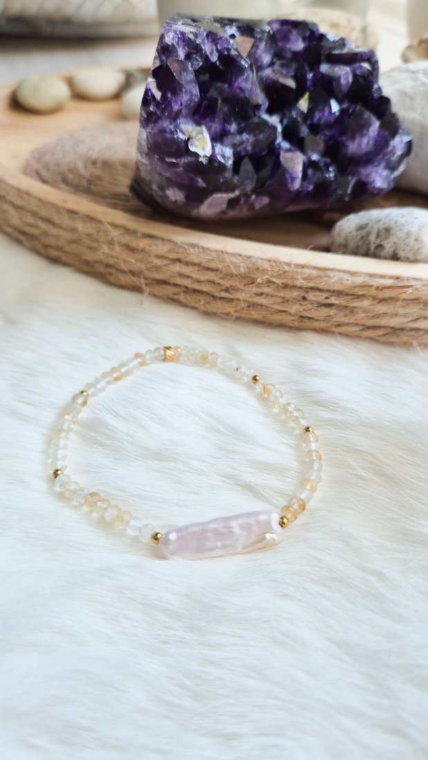 Bransoletka z naturalnego cytrynu i naturalnej perły..