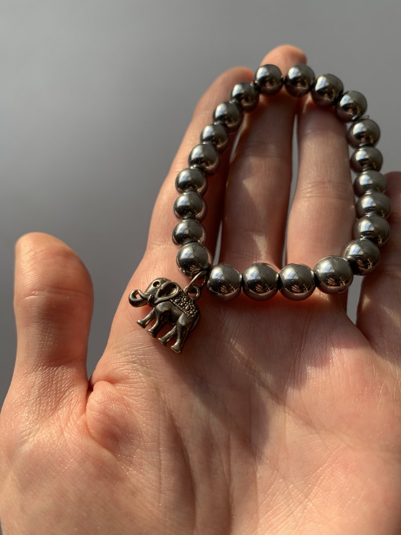 Bransoletka, koraliki z naturalnego kamienia na wąską rękę. Gumkę trzeba wymienić, bo straciła elastyczność. Nie jest to srebro.