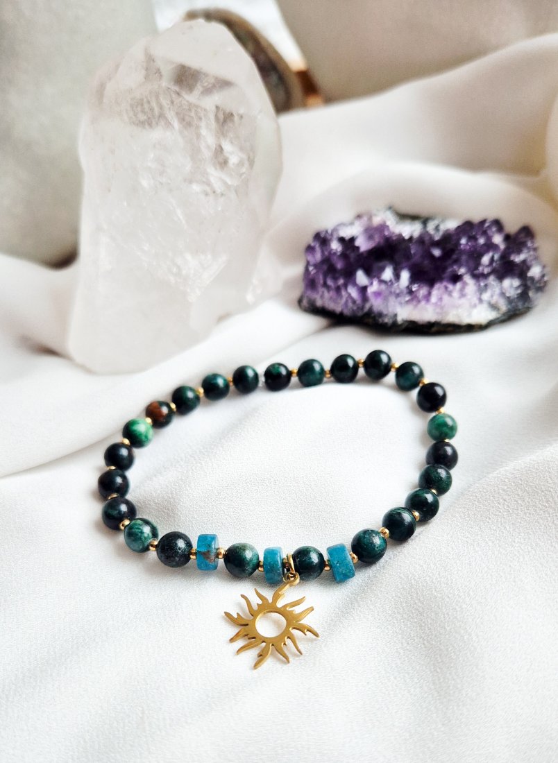Bransoletka z naturalnego szmaragdu i apatytu niebieskiego