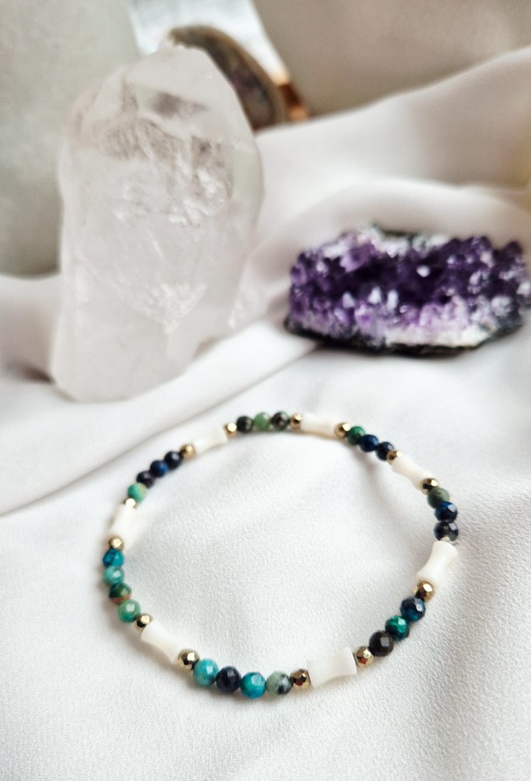 Tagi: #bransoletka z kamieniami, #chryzokola, #koral bialy, #naturalna biżuteria