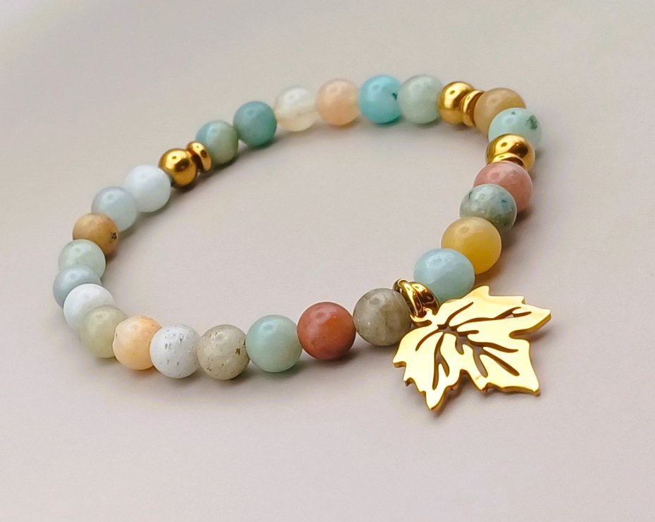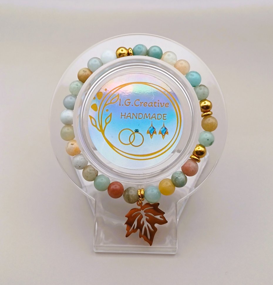 Ręcznie robiona damska bransoletka z naturalnych kamieni amazonitu.
