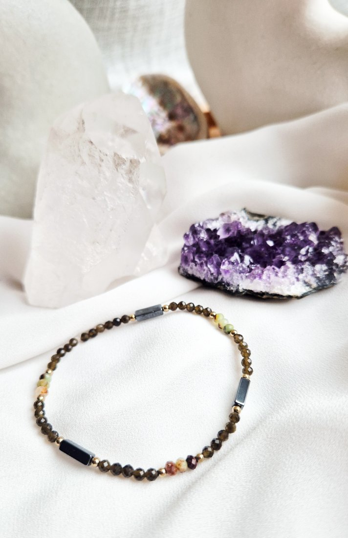 BRANSOLETKA Z OBSYDIAN ZŁOTEGO I CHRYZOPRAZU