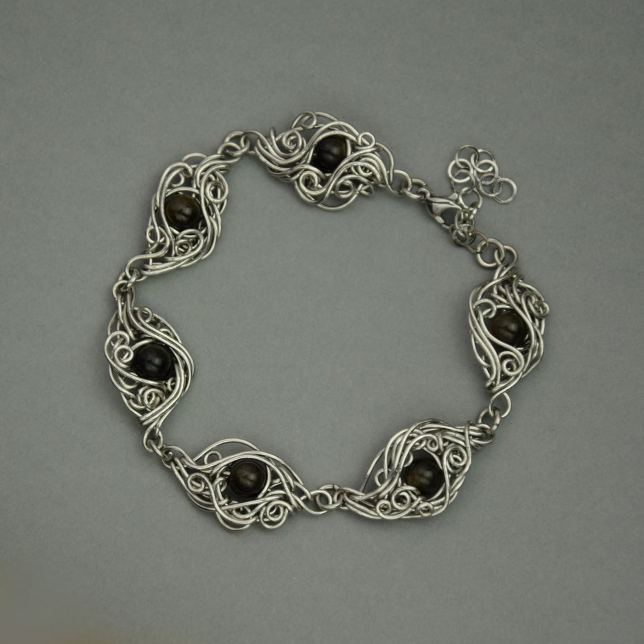 Tagi: #bransoletka, #obsydian złocisty, #stal chirurgiczna, #wire wrapping