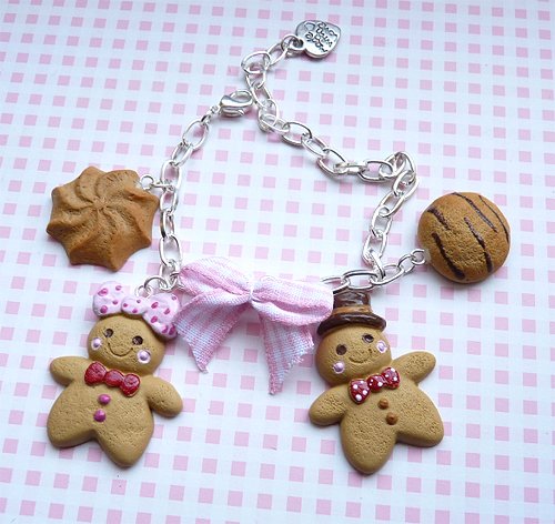 Oryginalna i urocza bransoletka-miniaturowe pierniczkowe ludziki i inne ciasteczka:) długość bransoletki regulowana, wysokość zawieszek: 2-3cm. Wysyłam ozdobnie zapakowaną:)