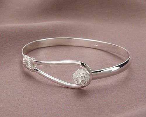 Delikatna bransoletka typu bangla, zapinana na niewielką różyczkę. Niezwykle kobiecy i oryginalny dodatek.