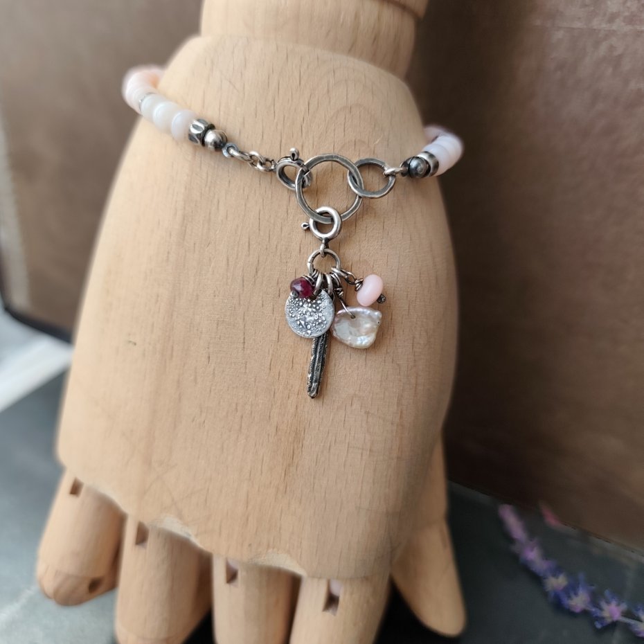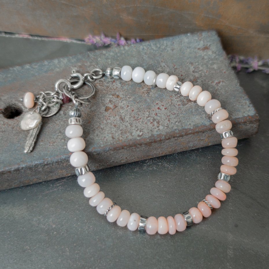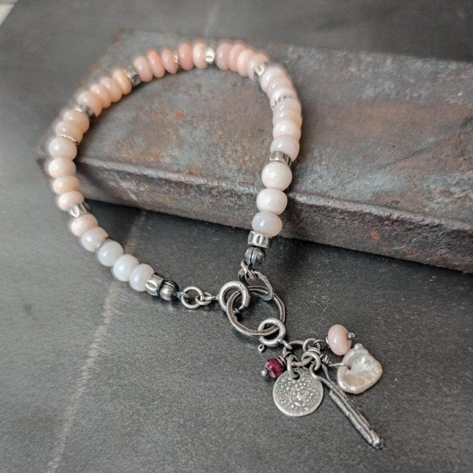 Tagi: #bransoletka z zawieszką, #kamienie naturalne, #opal różowy, #srebro 925