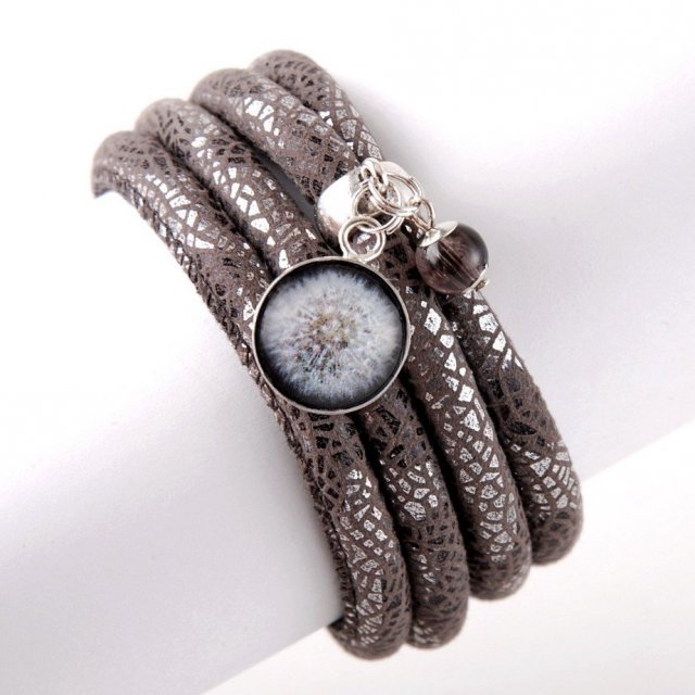 Bransoletka wykonana z efektownego miękkiego rzemienia we wzór witrażowy, srebrzony z wygodnym zapięciem magnetycznym.